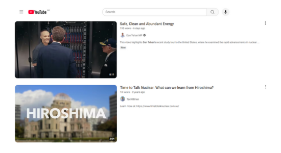 3. The Opposition seem to enjoy making youtube videos about nuclear power. I mean who can forget Ted O'Brien's video titled, “What can we learn from Hiroshima?” and the current Shadow Minister for Energy and Emissions Reduction, Dan Tehan seems to be following in his predecessors footsteps. As Chris Bowen pointed out in Question Time on Tuesday, “The current shadow minister continues in the same vein. He's spent the last couple of weeks in the United States—good on him, fair enough. He put up an eight-minute video on YouTube about his trip. I watched it so that you don't have to. You're welcome! Having watched that video, we can tell some things. He did not visit any small modular reactors, advanced modular reactors or micro reactors, perhaps due to the small technical detail that none exist—there were none to see—but he did go to the national laboratory in Idaho. What his video didn't tell us is that that was the site for the new-scale small modular reactor, which was cancelled last year because it was so expensive and because no-one would buy at the power from it, because the power was so expensive. That was the small modular reactor that the member for Fairfax had as the image on his website, Time to Talk Nuclear. There is no nuclear renaissance; there is just a renaissance of silly ideas from the opposition.”
