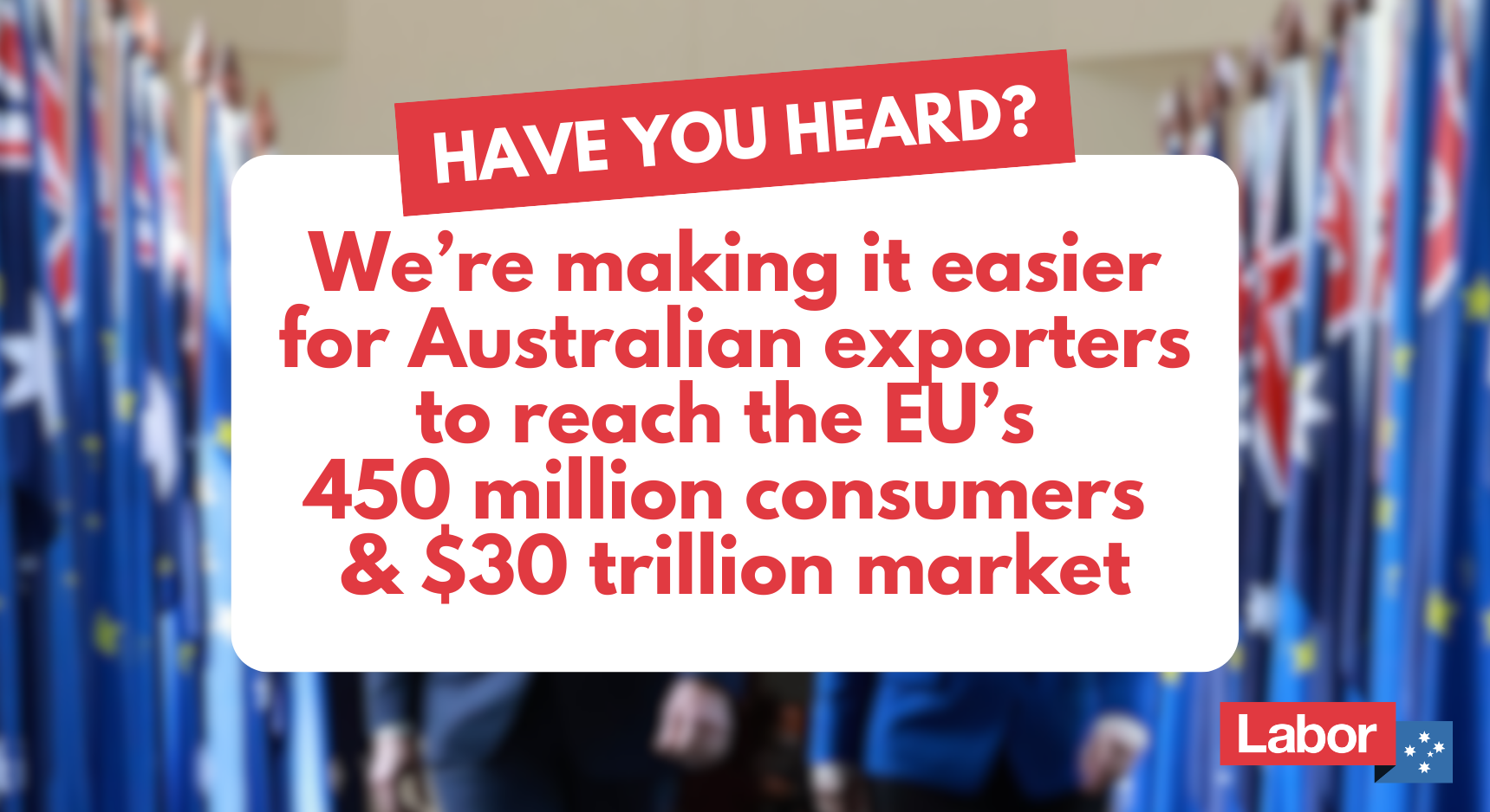 1. After eight years of negotiations, the PM signed Australia’s landmark Free Trade Agreement with the EU. It gives Australia access to a $30 trillion dollar economy, cuts tariffs, and backs Australian exporters and jobs. And in QT, Madeline King gave a special shoutout to Don Farrell “the finest trade minister this country has ever seen”. Hear, hear.